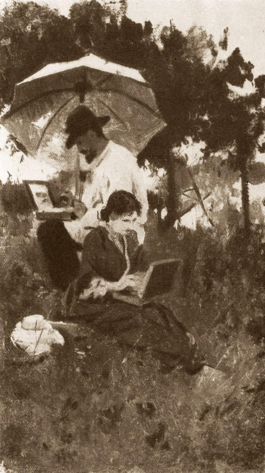 И. И. Левитан и С. П. Кувшинникова на этюдах. 1887
