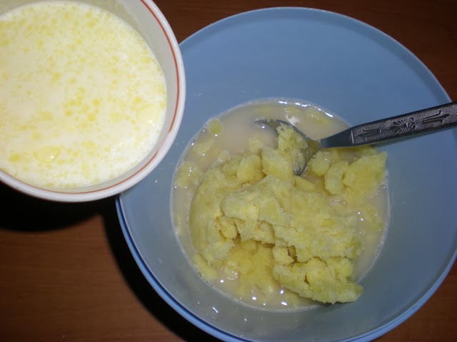Отлить в чашку 120 мл воды из картофеля, остальную воду слить.