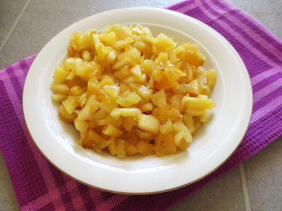 Яблоки очистим от кожуры и сердцевины, порезать на кубики. В маленькой кастрюле растопить сливочное масло, положить яблоки и высыпать сахар, перемешивая варить 10-15 минут.