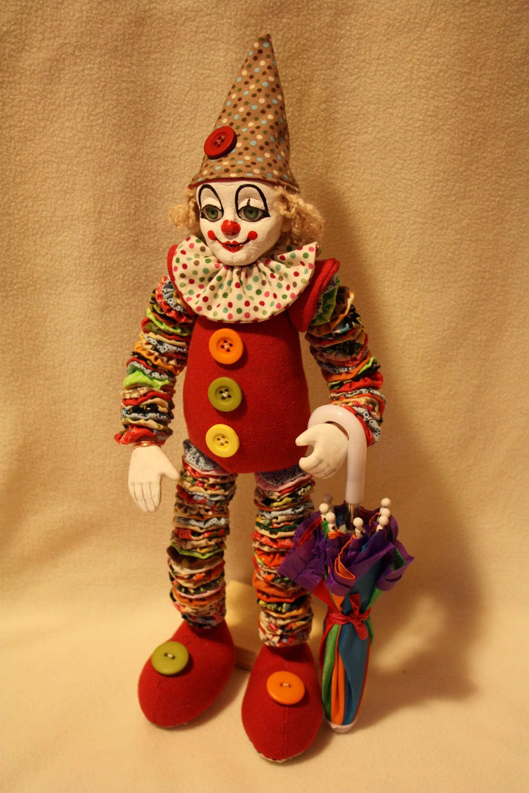 Откопала все имеющиеся у меня обрезки (то, что отсталось от недавно сшитого домового) + соорудила голову и руки для клоуна.