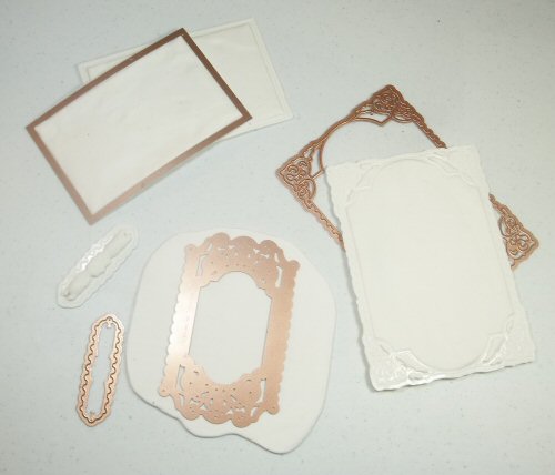 My first project was fashioned after an old bible I purchased in an antique store years ago. I love the intricate layers and gold embossing on it, so I tried to re-create that look with the die templates I am using: