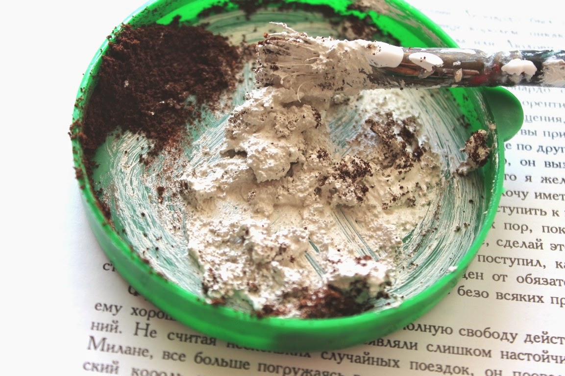 Готовлю пасту: смешиваю акриловый грунт и МОЛОТЫЙ кофе (заметьте, тут не растворимый, а именно молотый, потому что моя задача - получить зернистую пасту светло-кофейного тона, а не однородную коричневую клейкую грязь). Пропорции произвольные))