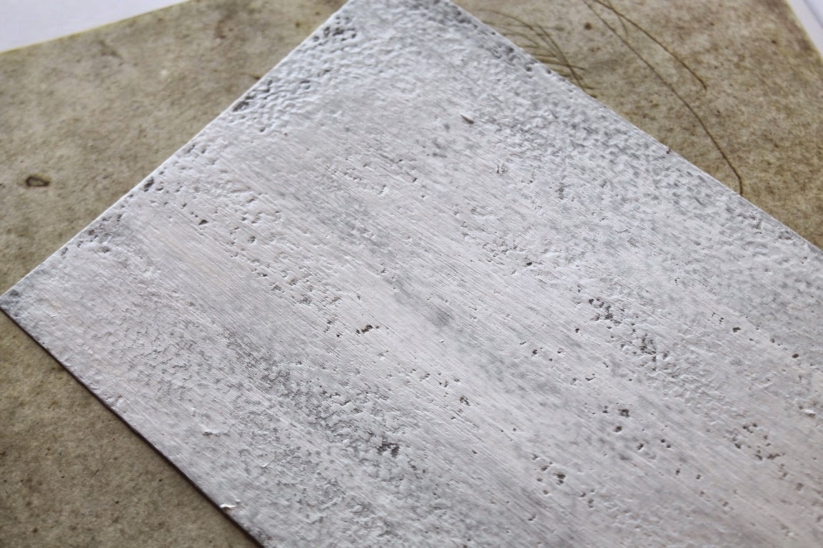счищаю ребром мастихина те места, где был парафин - проявляются серые облезлости.