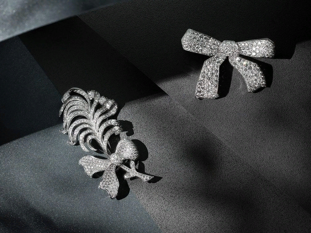Такие аксессуары преимущественно имеют крупный размер и декорируются разноцветными камнями. Стилисты бренда предлагают носить такие изделия в тандеме с однотонными платьями или костюмами. Между тем, мадемуазель Коко предпочитала носить броши на шляпке или берете, и в настоящее время такой способ ношения аксессуаров тоже актуален.