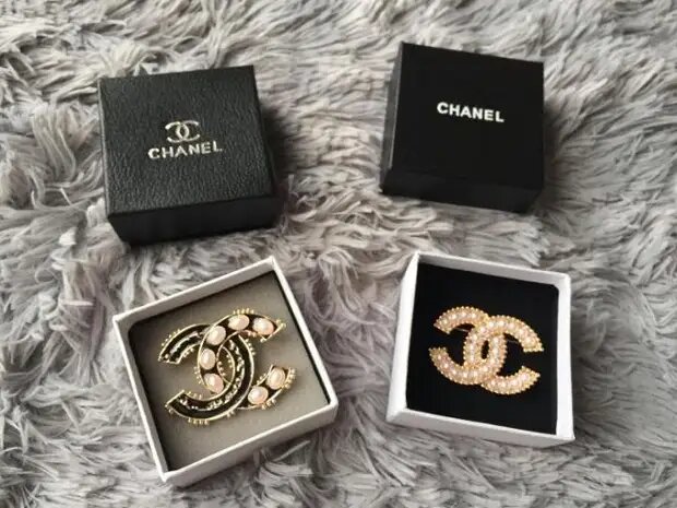 на обратной стороне аксессуара должна присутствовать овальная (не круглая!) или рельефная отметка с указанием наименования бренда, серии и года выпуска;любые украшения Шанель имеют внушительный вес. Подделки же, напротив, часто совсем не ощущаются в руке.