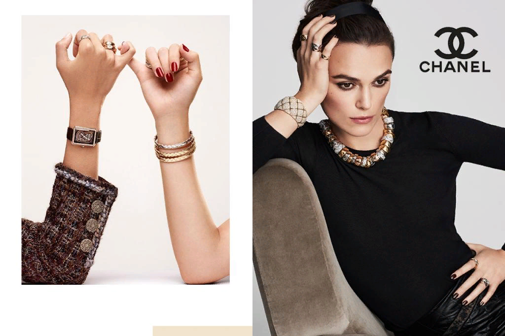 Лицом серии Chanel избрал Киру Найтли. Перед камерой Сары Мун английская актриса позирует в черном платье, оттененном красочными всполохами золотых колец, браслетов, сережек и колье.