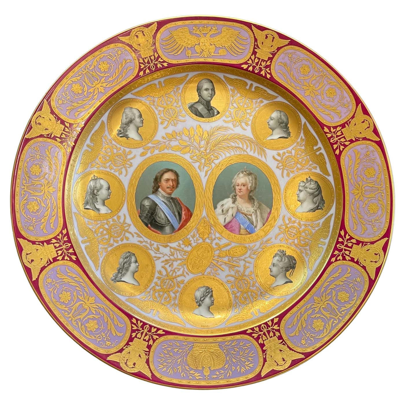 Rare Large Royal Vienna Hand Painted Porcelain Portrait Plate Russian Empire