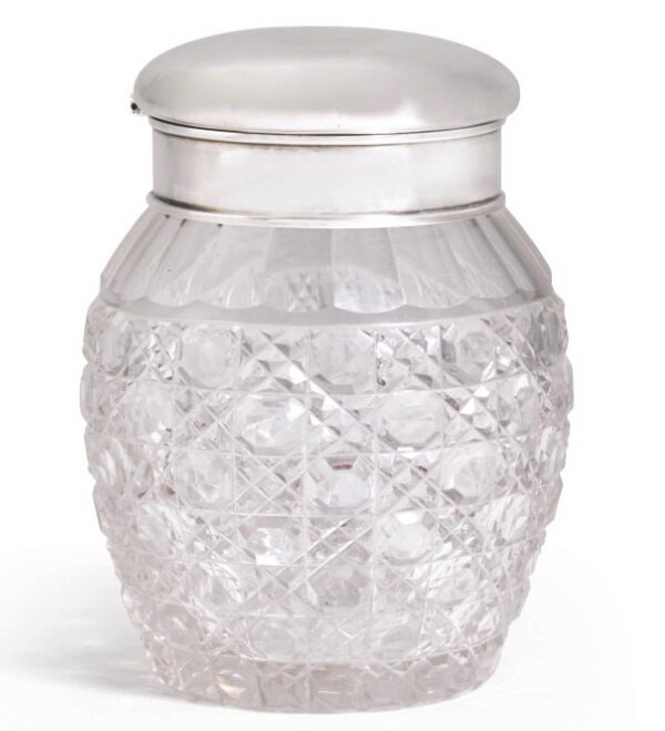 Чайница из хрустального стекла с серебряной крышкой, высота 12,3 см, фирма Фаберже, Москва, 1899-1908 гг.