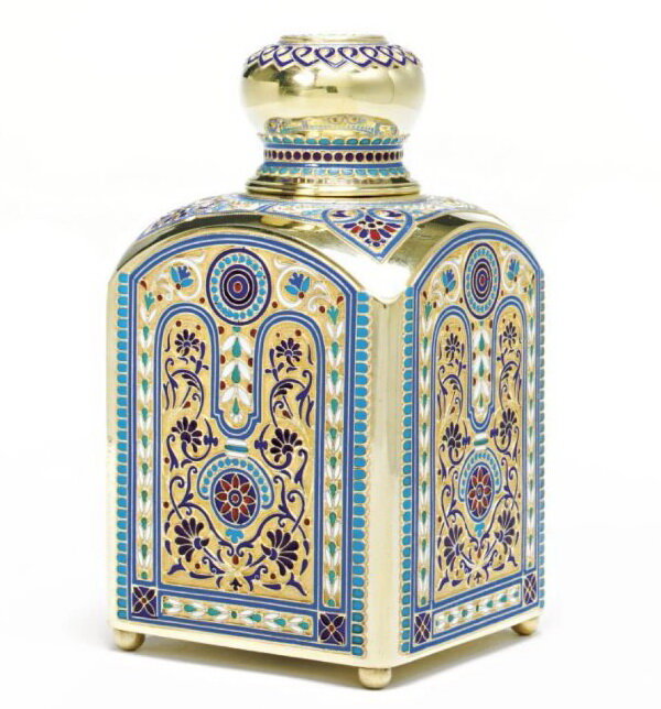 Чайница из позолоченного серебра с эмалью, высота 14 см, Антип Кузмичев для Tiffany & Co, Москва, 1896 г.