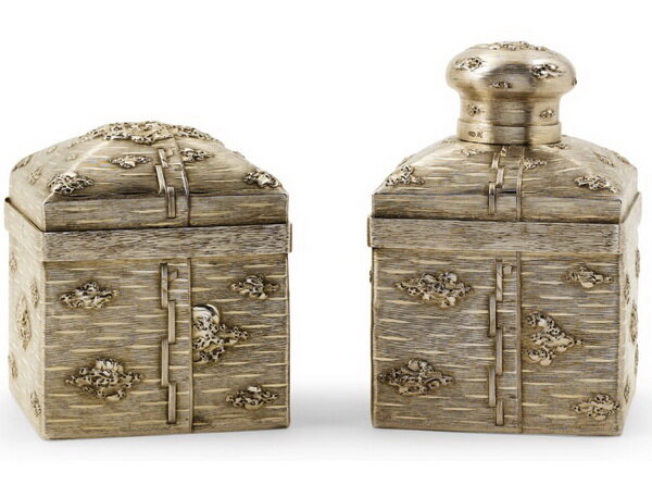 Серебряные чайницы, выполненные в едином художественном оформлении с сахарницами, часто продавались в комплекте. Это был популярный подарочный товар.