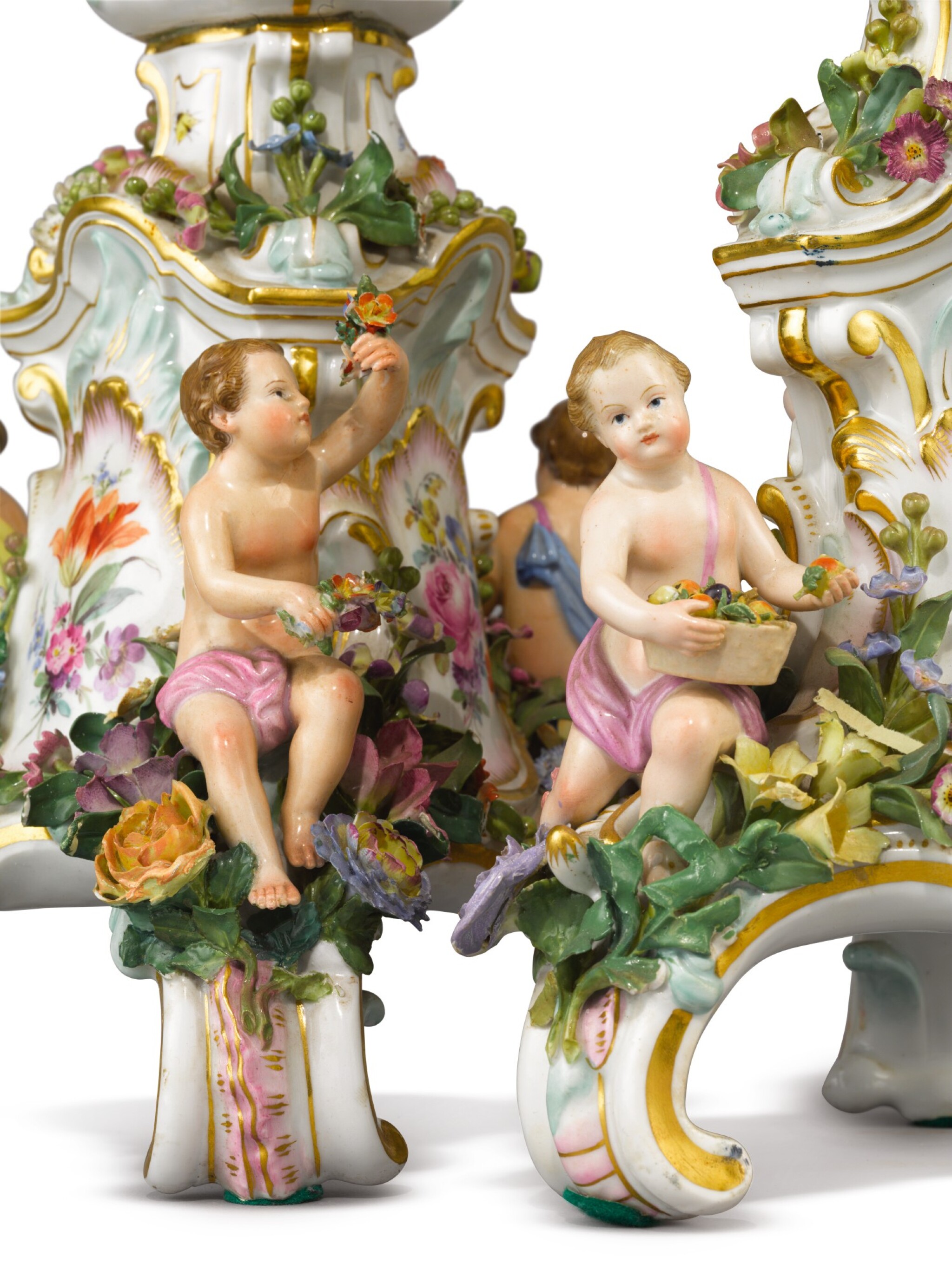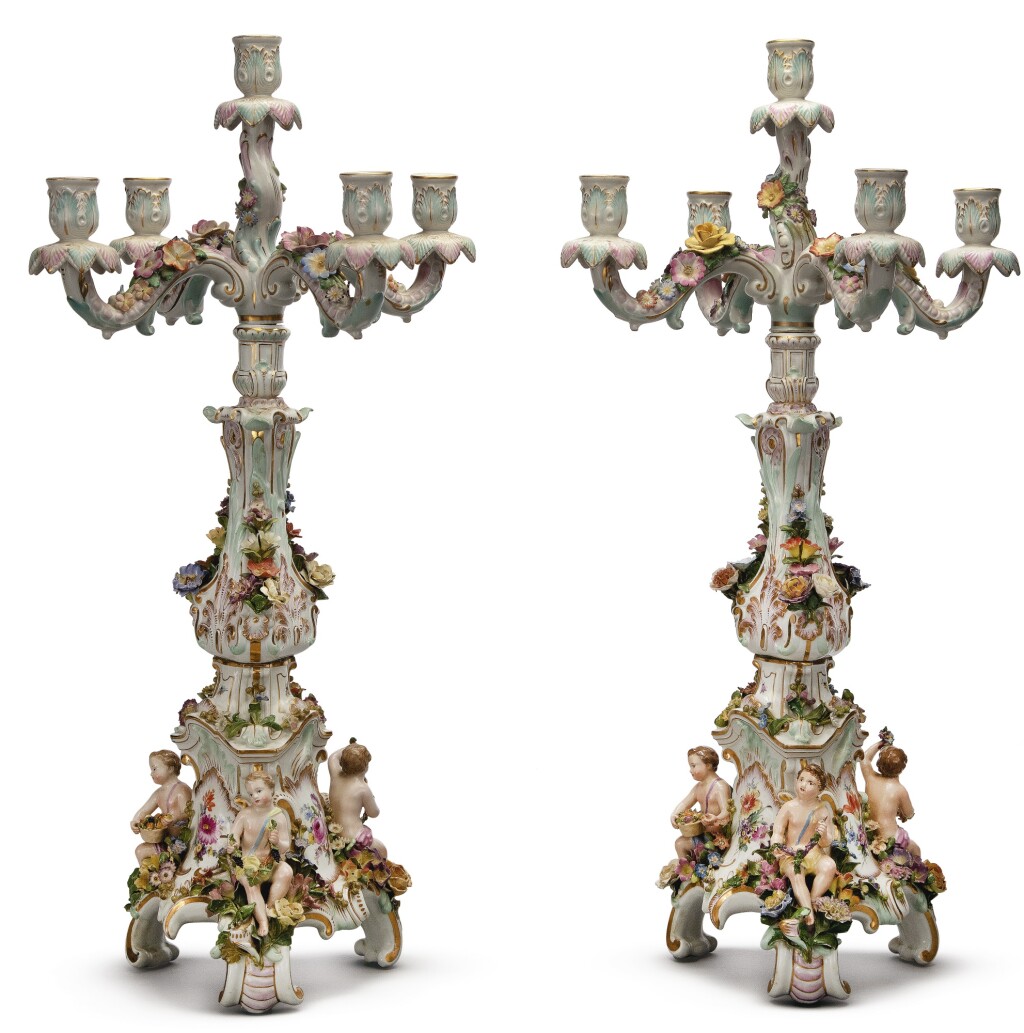 A PAIR OF MEISSEN FIVE-LIGHT CANDELABRA, 19TH CENTURY