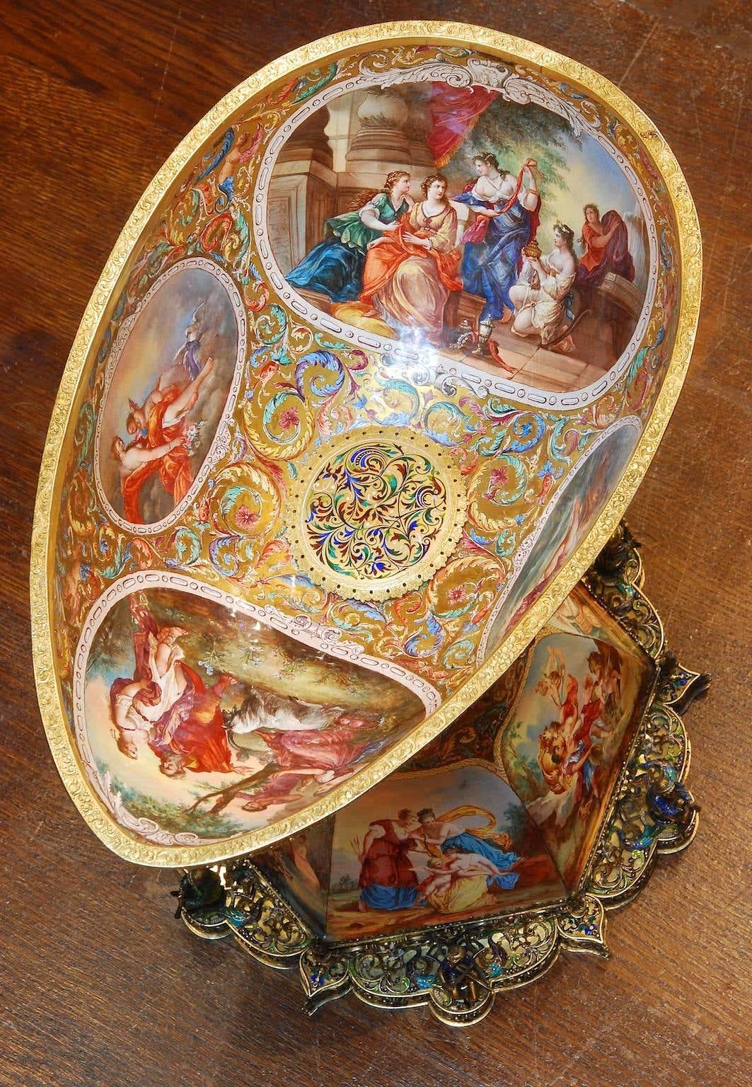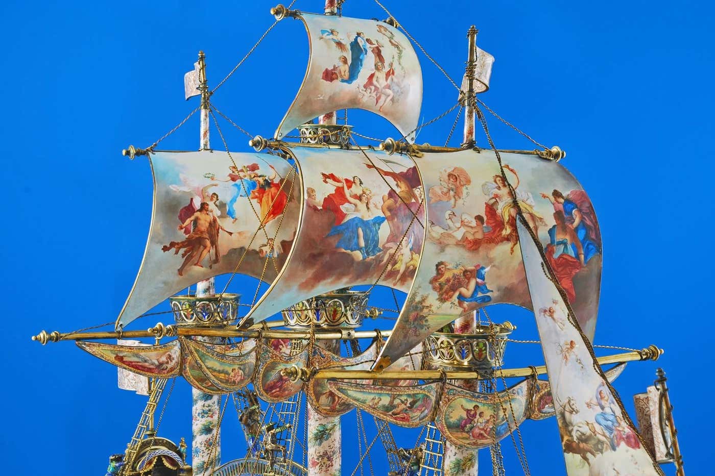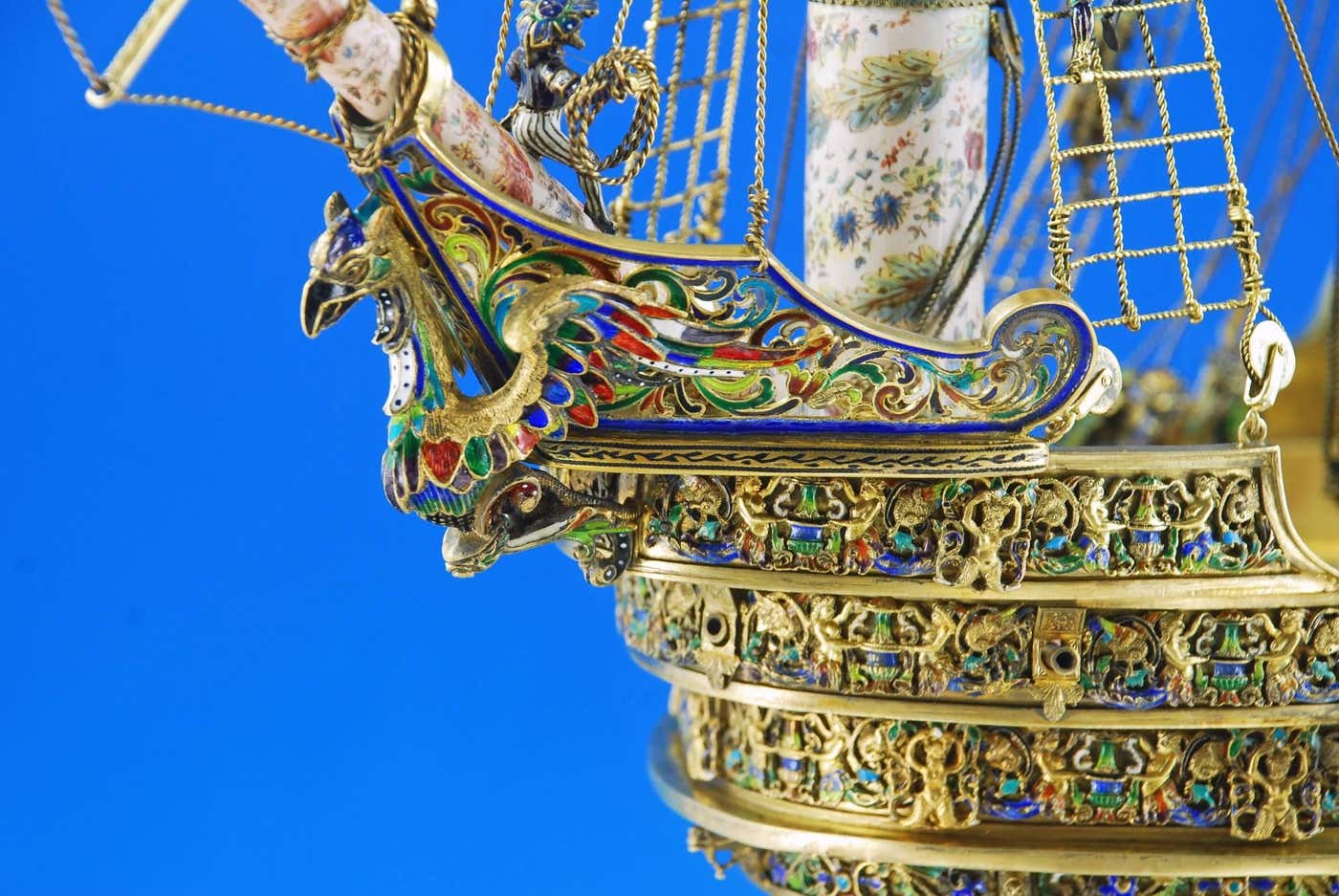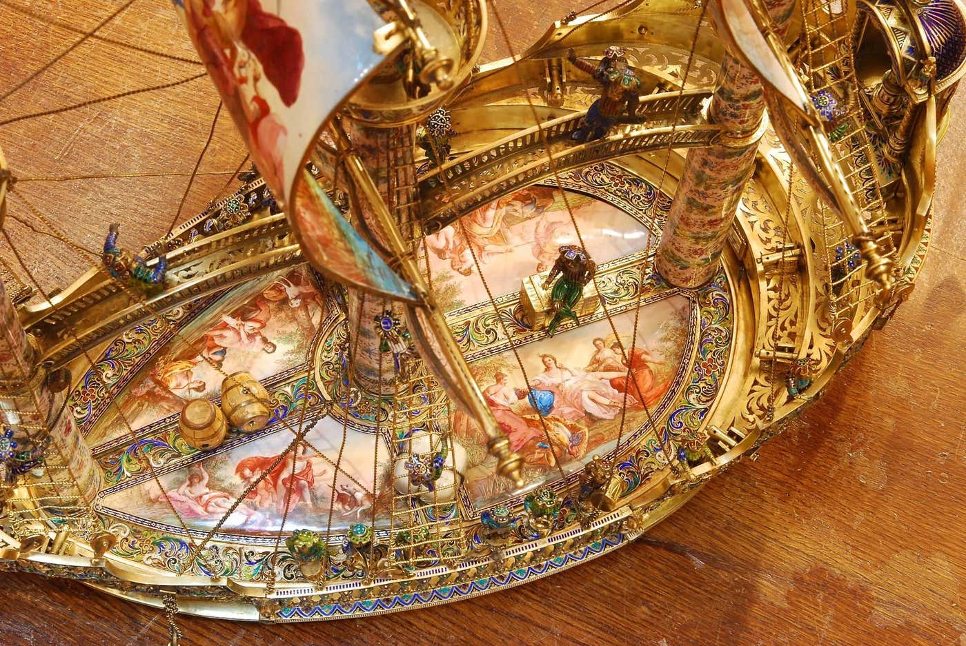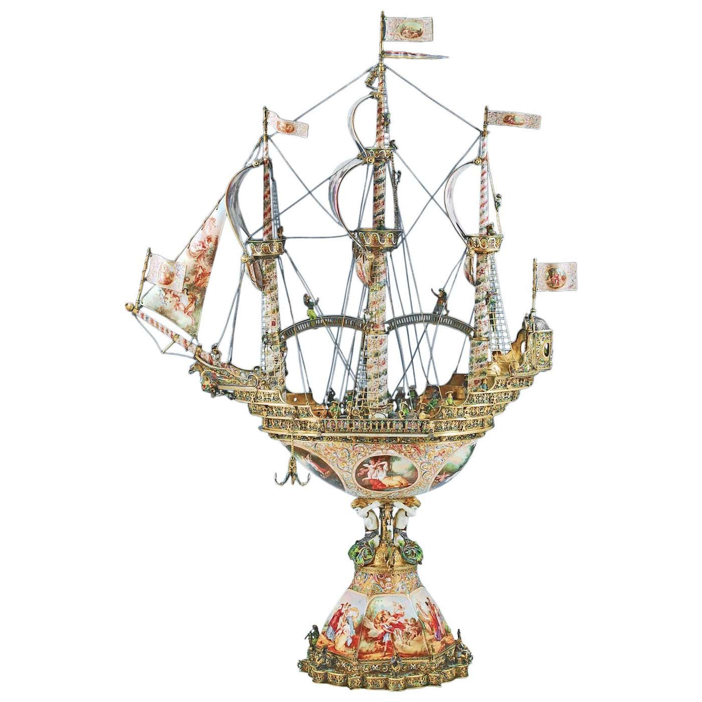 Monumental 19th Century Silvergilt Mounted Viennese Enamel 'nef'