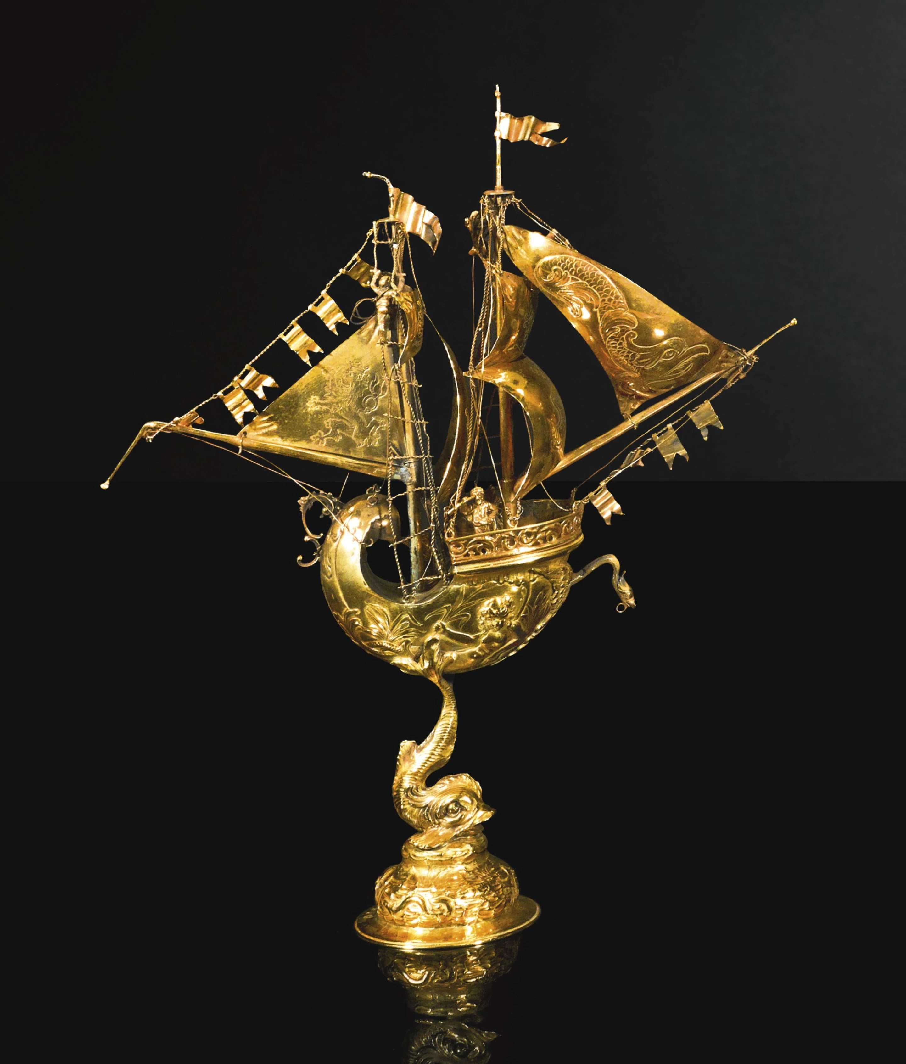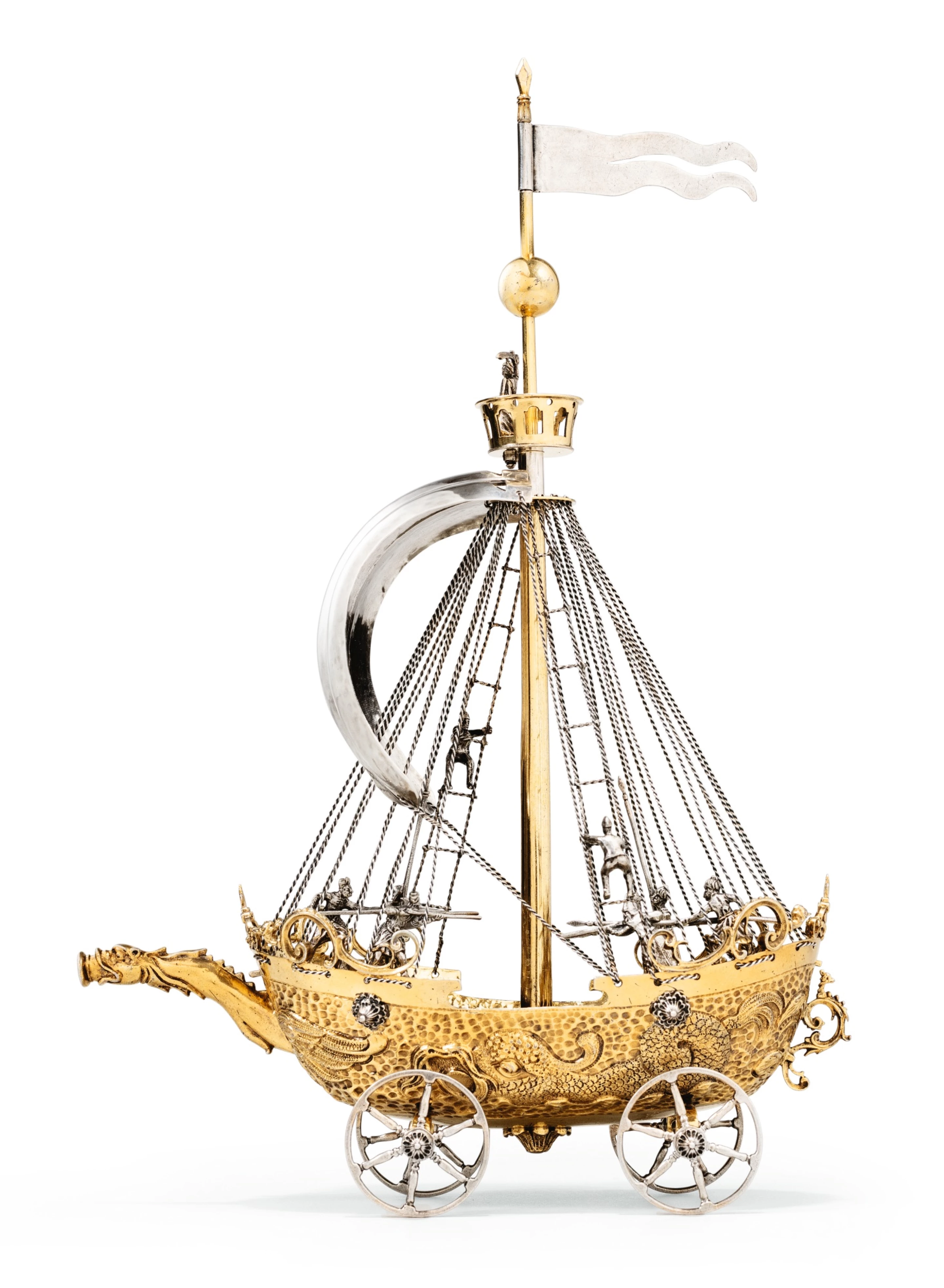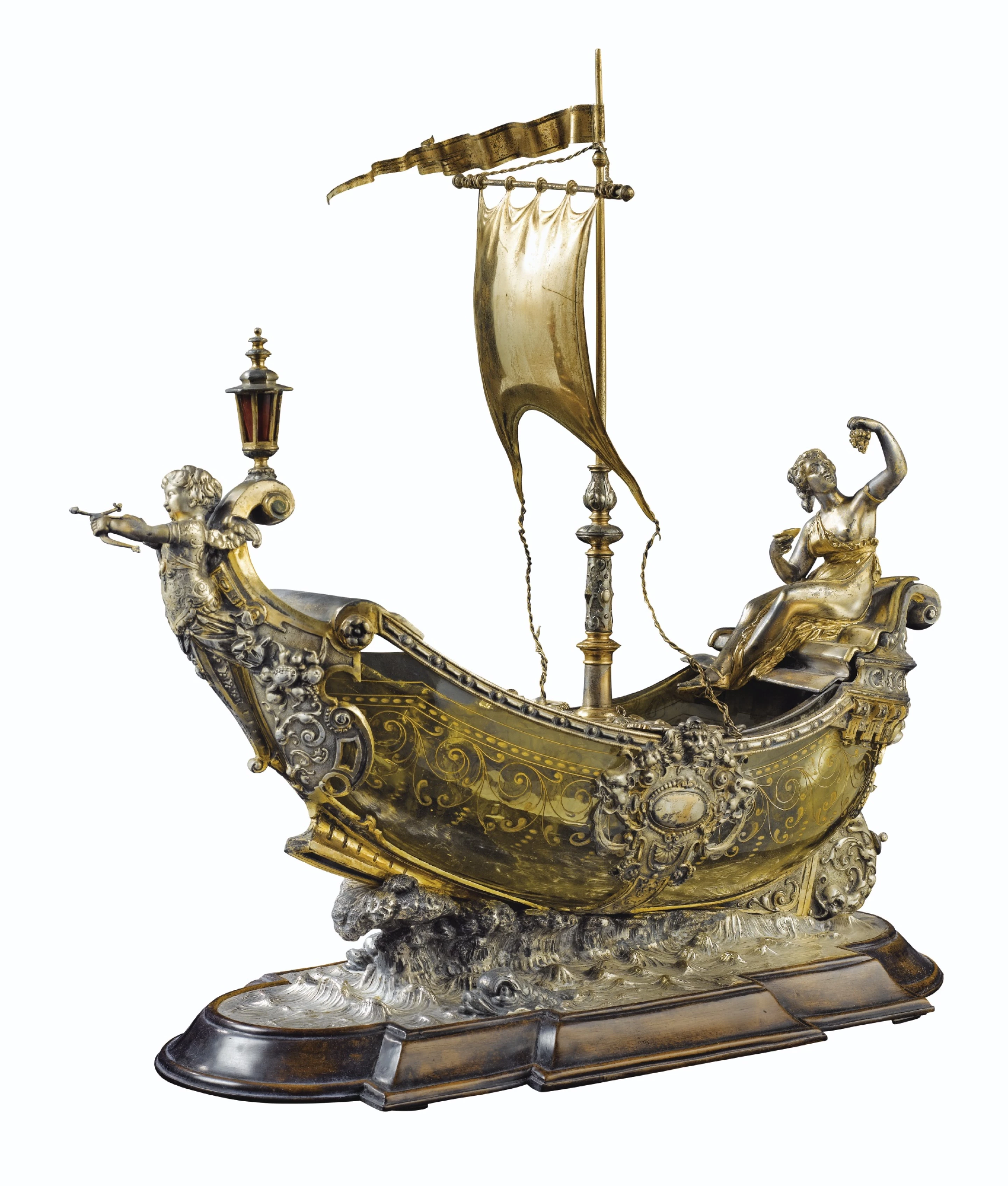 A GERMAN PARCEL-GILT SILVER NEF -FORM DRINKING CUP, GEORG MÜLLNER, NUREMBERG, CIRCA 1641-1646 | A German parcel-gilt silver nef -form drinking cup, Georg Müllner, Nuremberg, circa 1641-1646