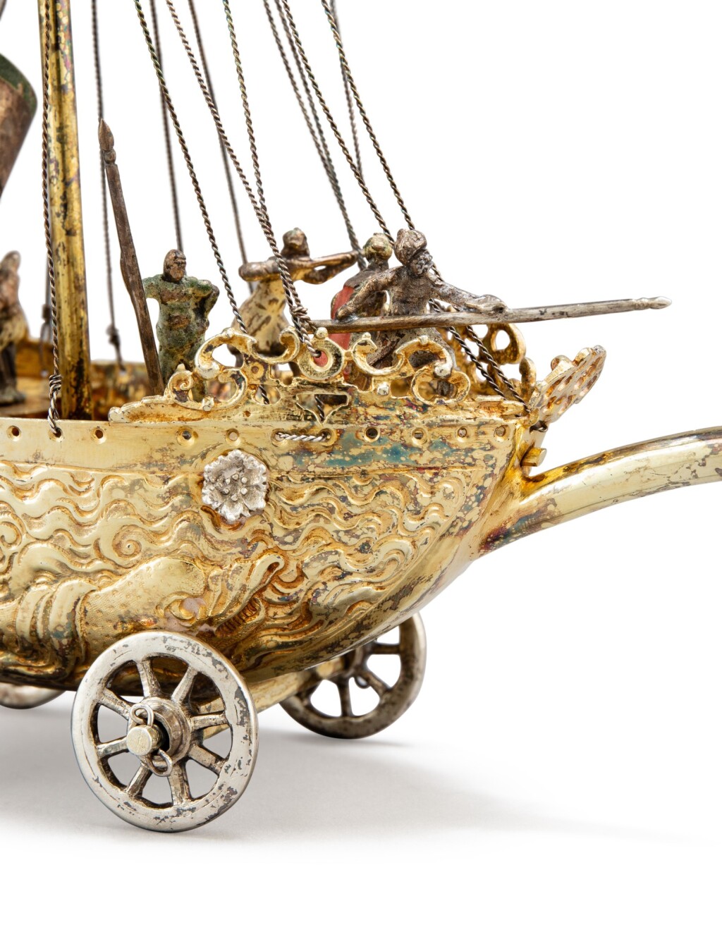 AN AUSTRIAN SILVER-GILT AND ENAMEL NEF, HERMANN BOEHM, VIENNA, CIRCA 1890
