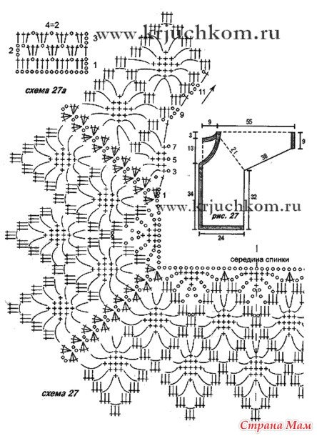 Летняя вязаная кофточка - схемы вязания ажурных узоров