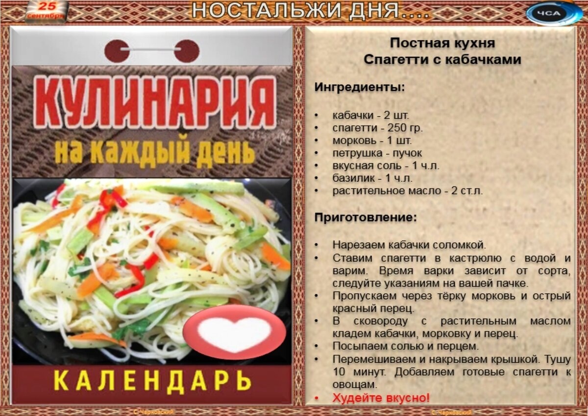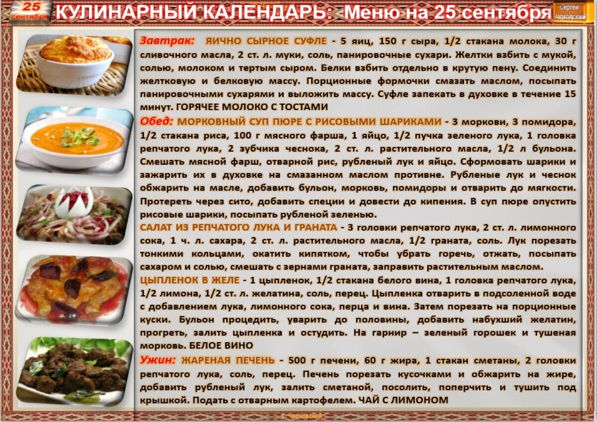 Рецепты дня на 25 сентября(авт.С.Чарковский)