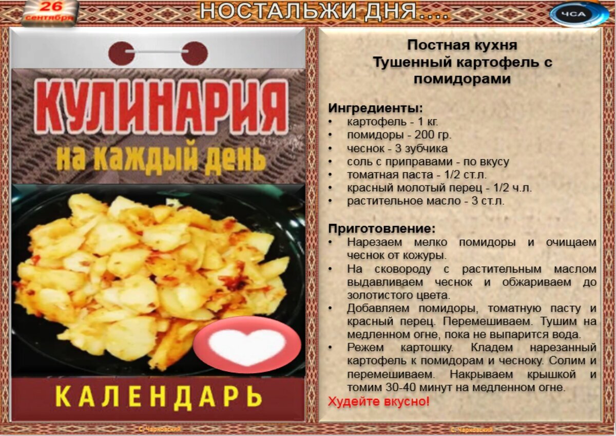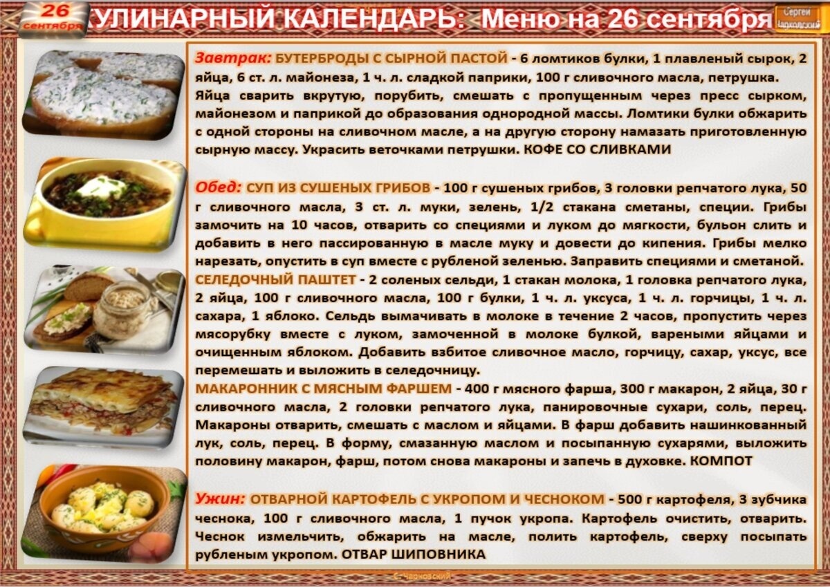 Рецепты дня на 26 сентября(авт.С.Чарковский)