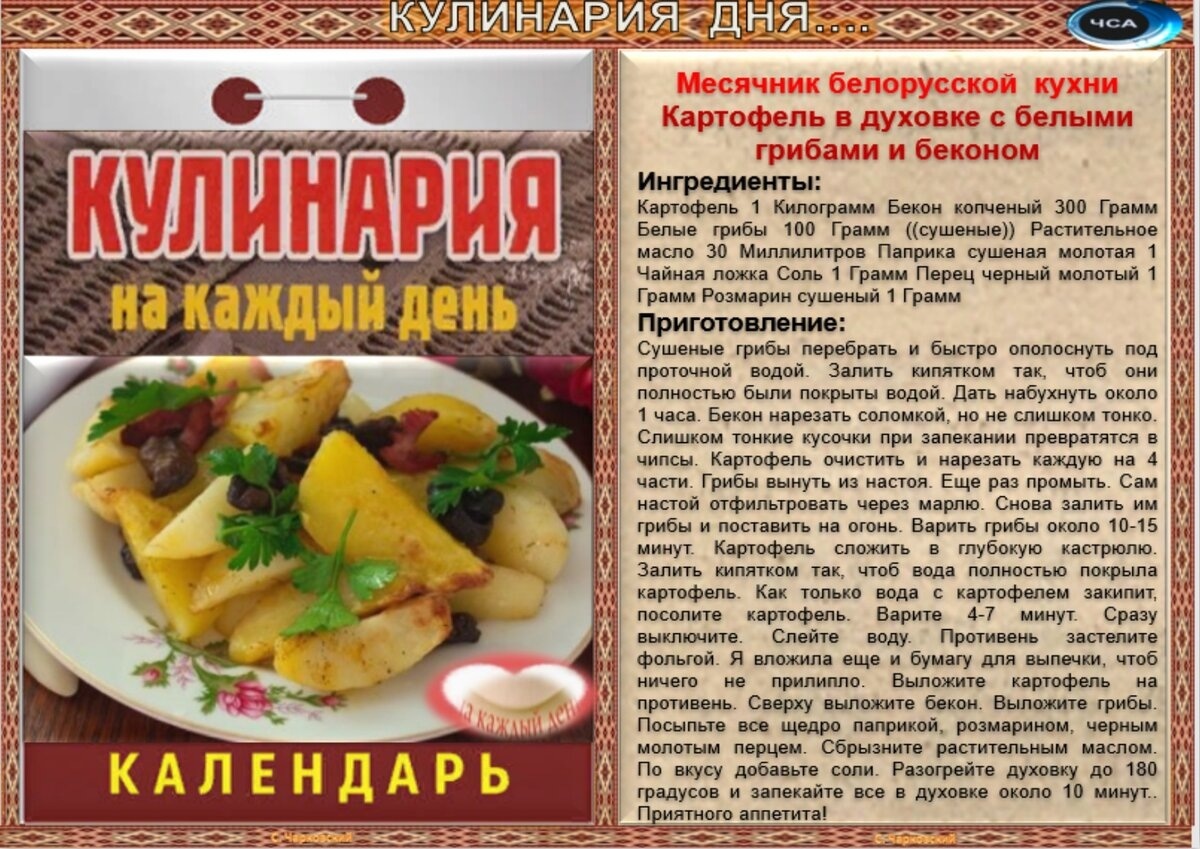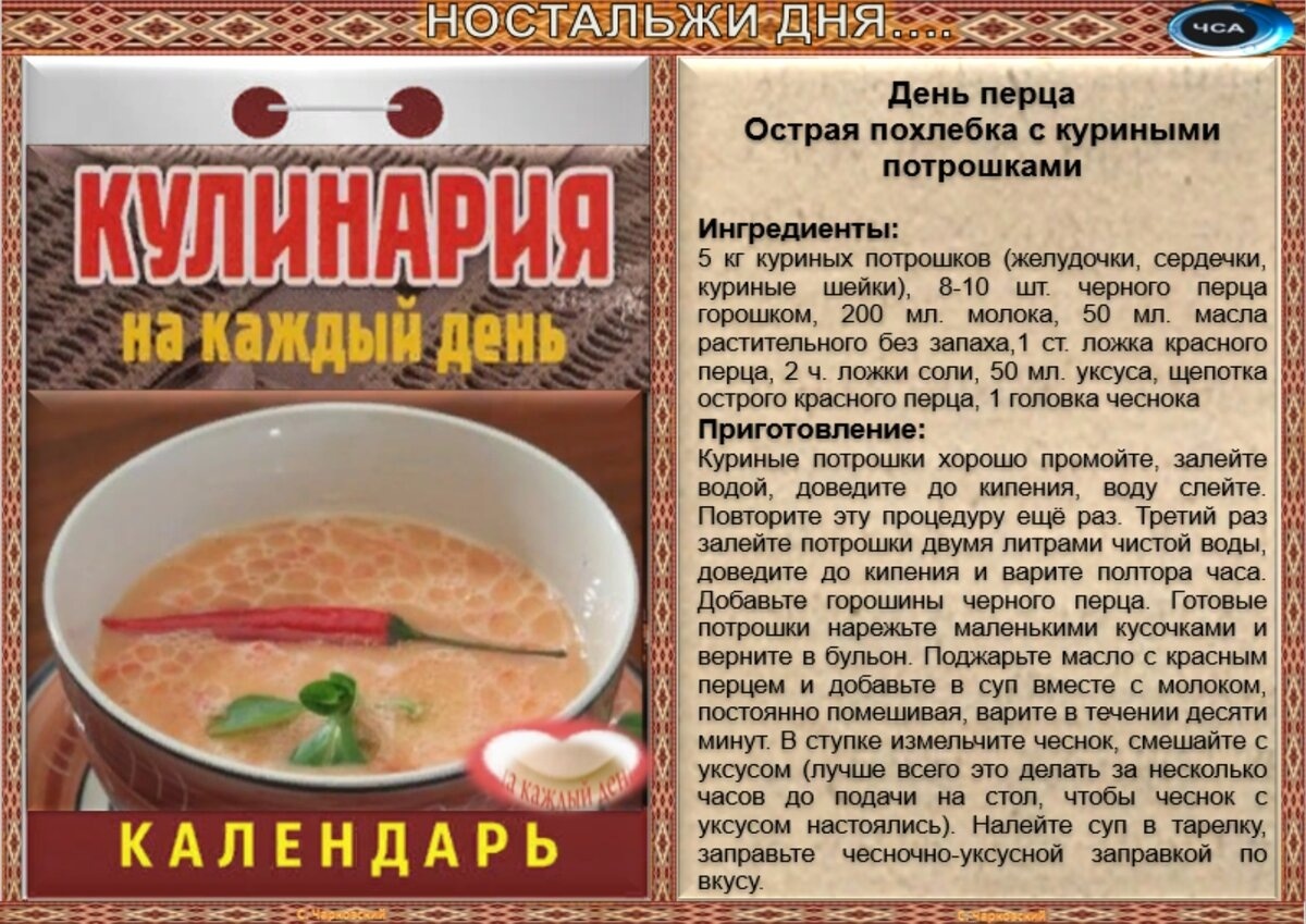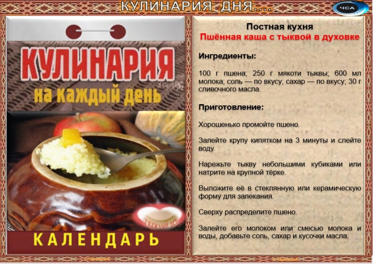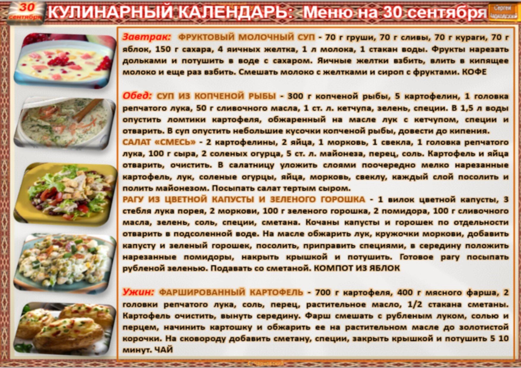 Рецепты дня на 30 сентября.(авт.С.Чарковский)