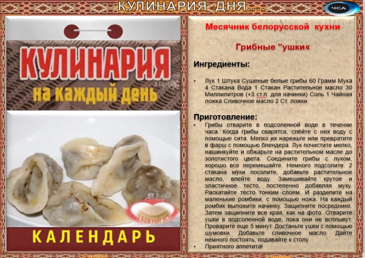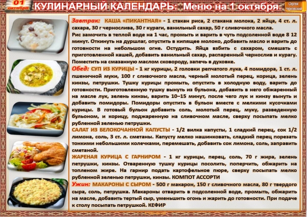 Рецепты дня на 1 октября(авт.С.Чарковский.)