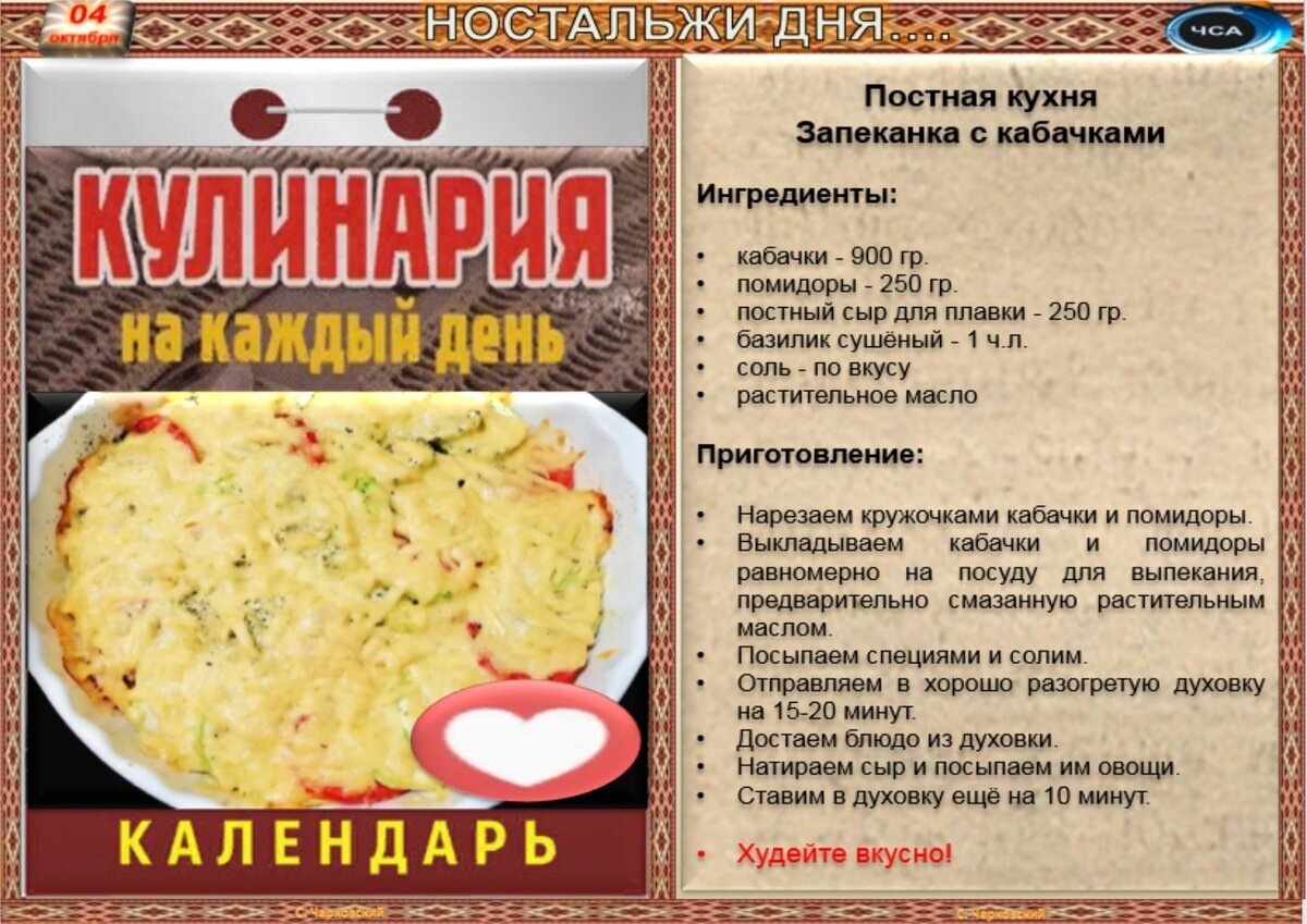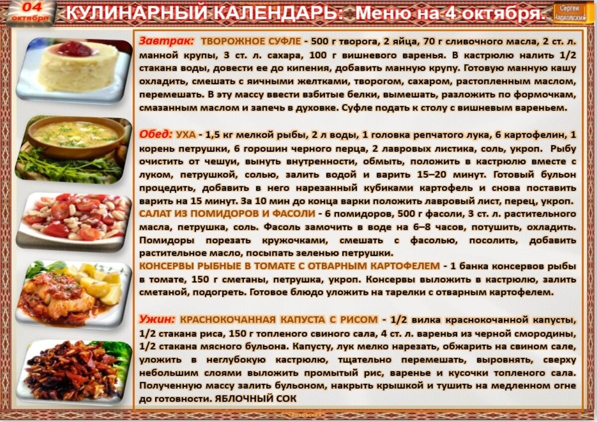 Рецепты дня на 4 октября.(авт.С.Чарковский)