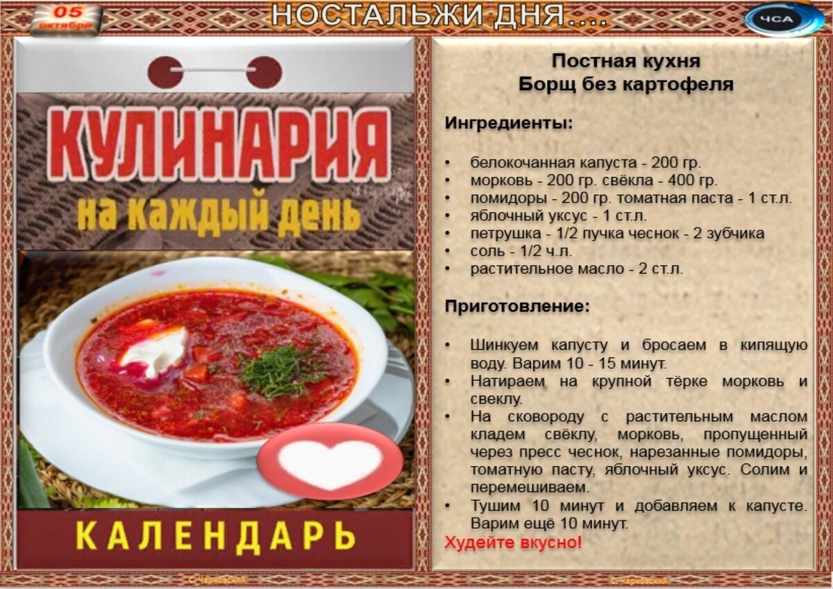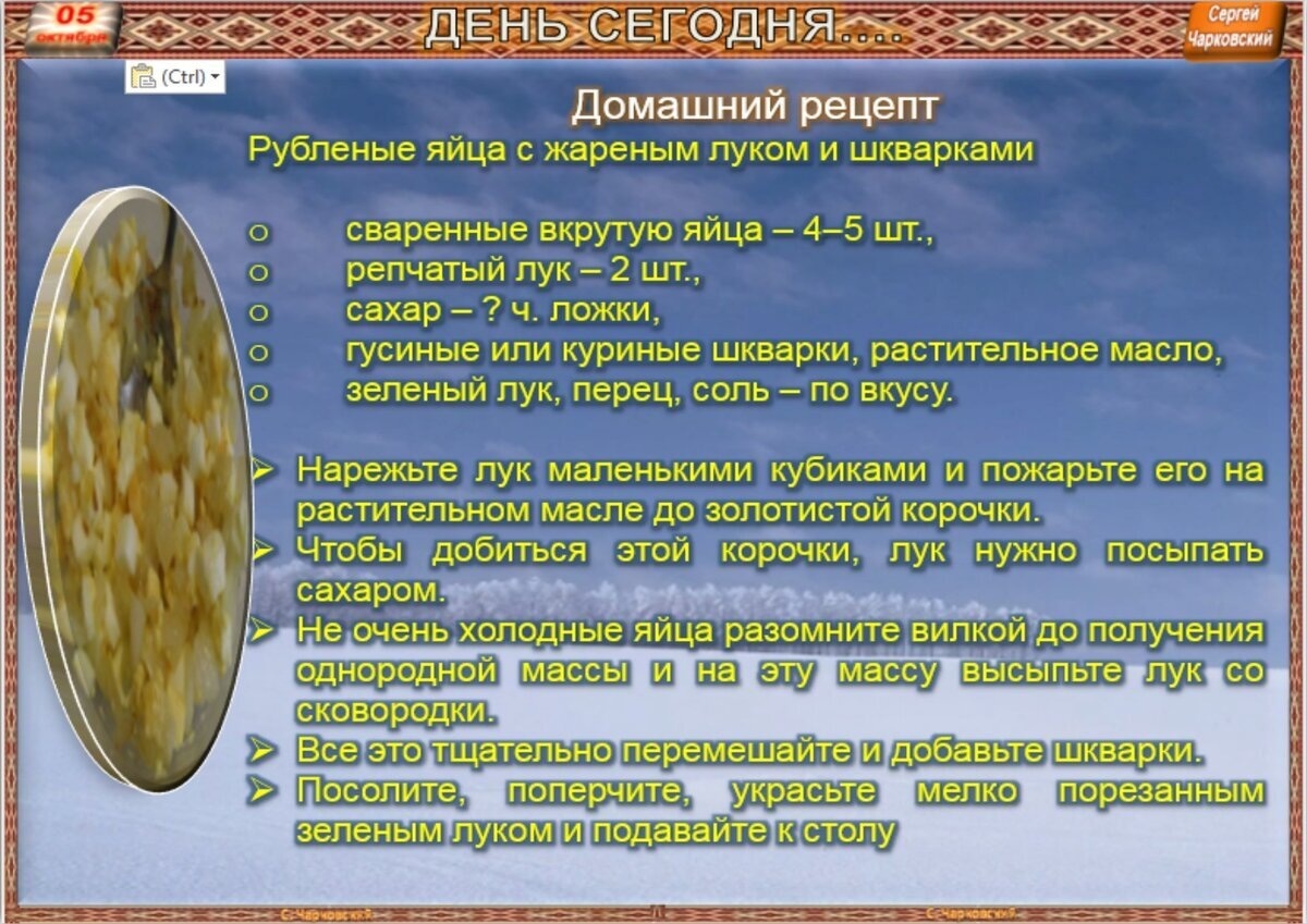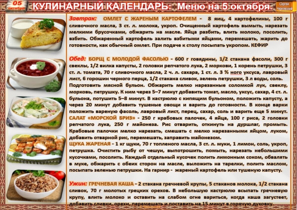 Рецепты дня на 5 октября(авт.С.Чарковский)