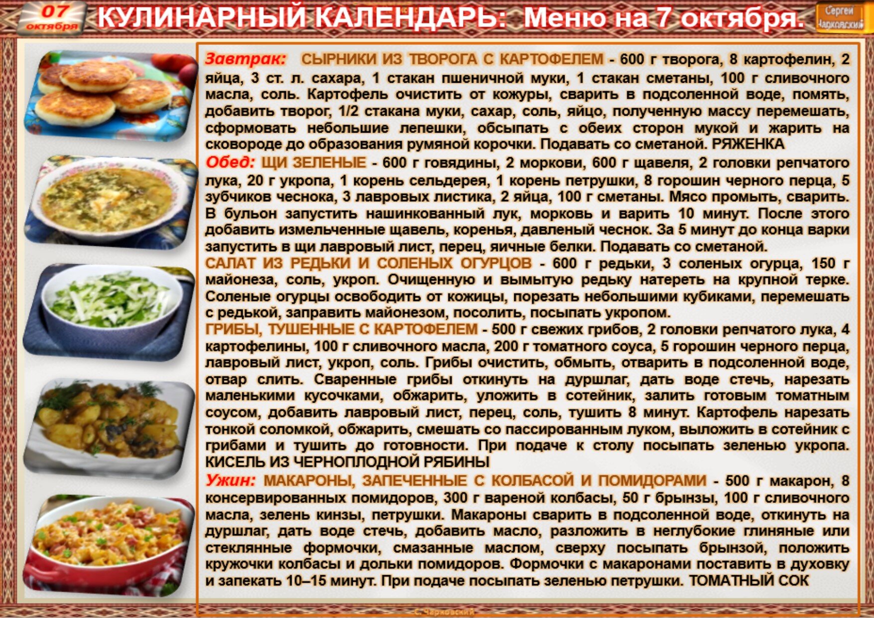 Рецепты дня на 7 октября(авт.С Чарковский)