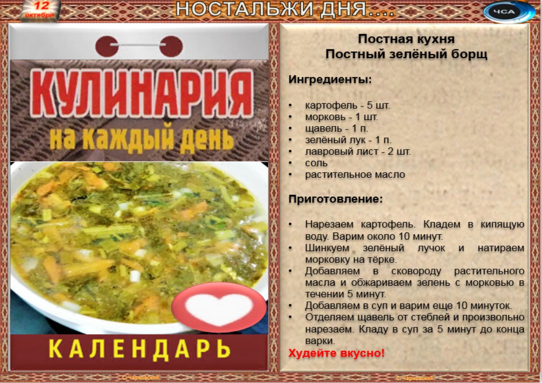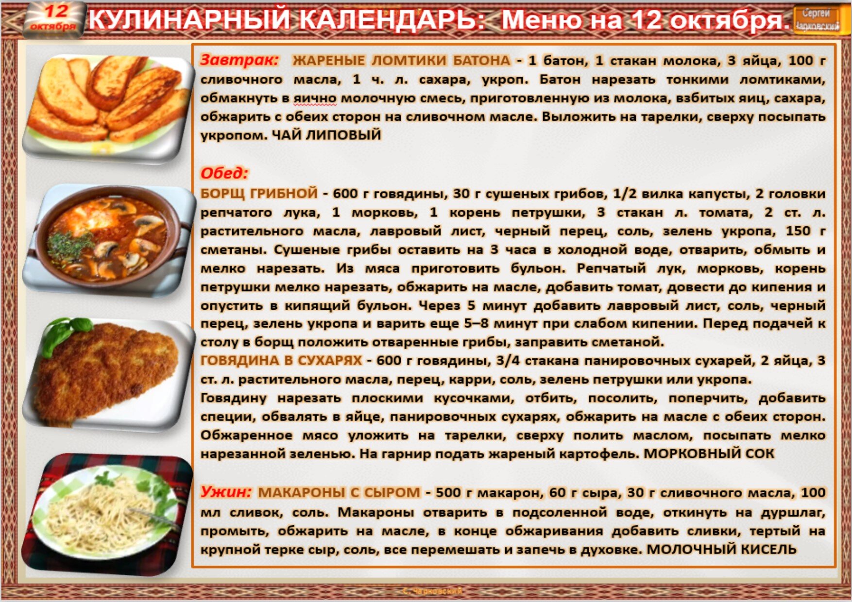 Рецепты дня на 12 октября(авт.С.Чарковский)