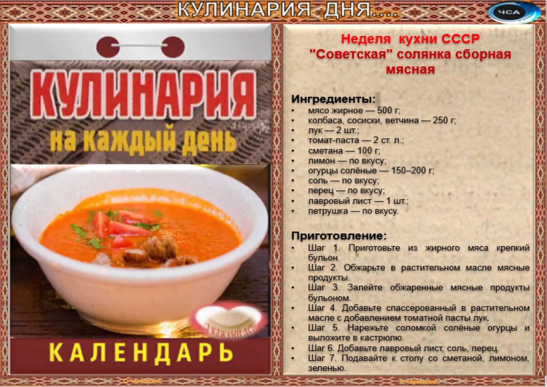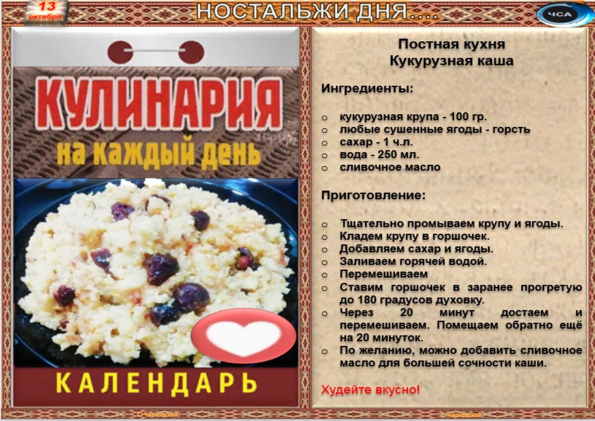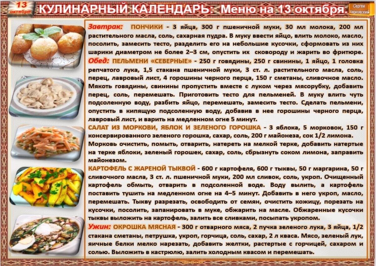 Рецепты дня на 13 октября(авт.С.Чарковский)