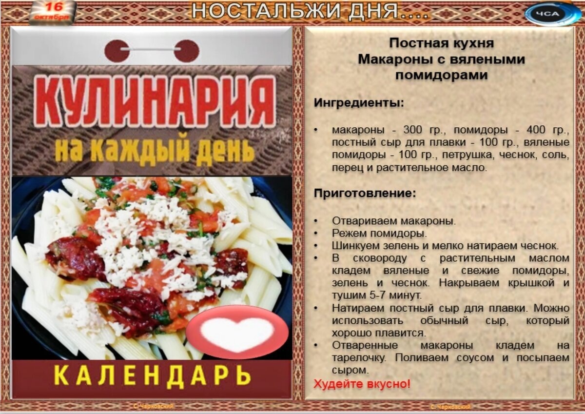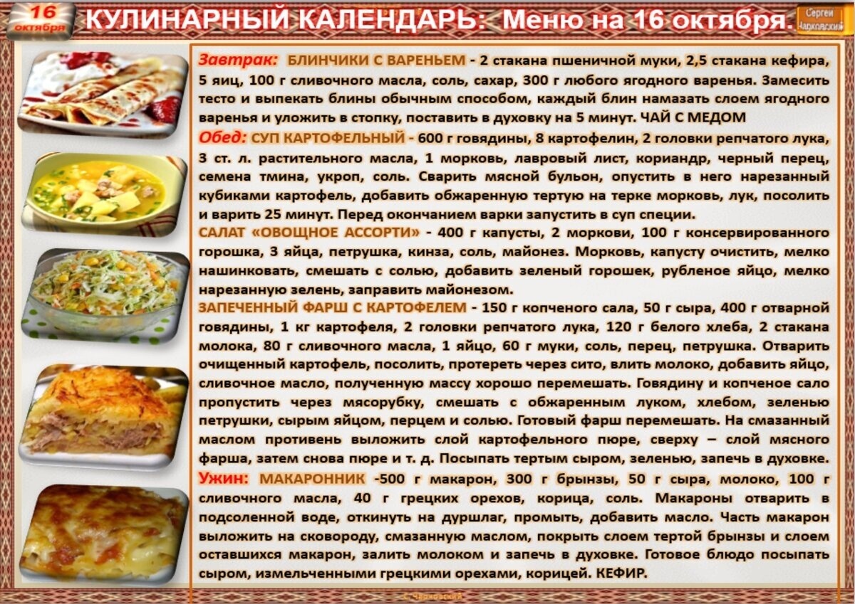 Рецепты дня на 16 октября(авт. С.Чарковский)