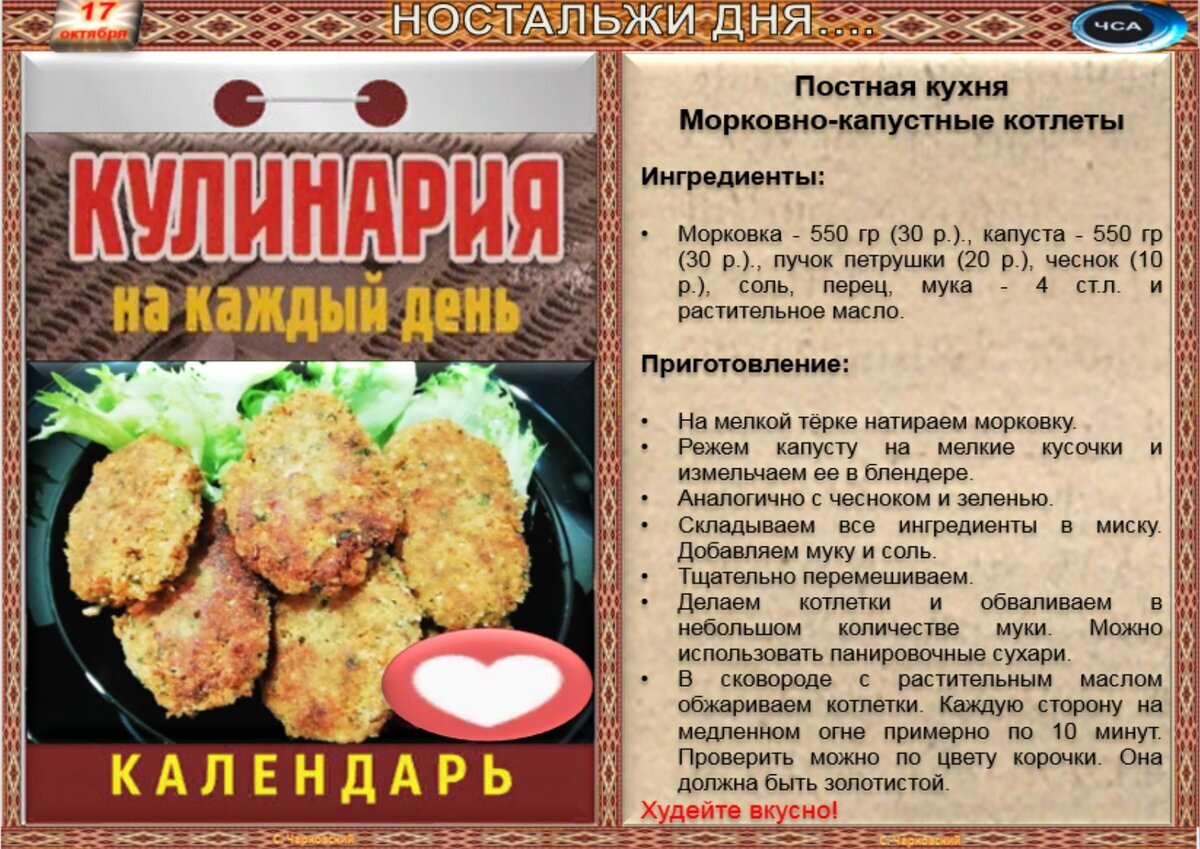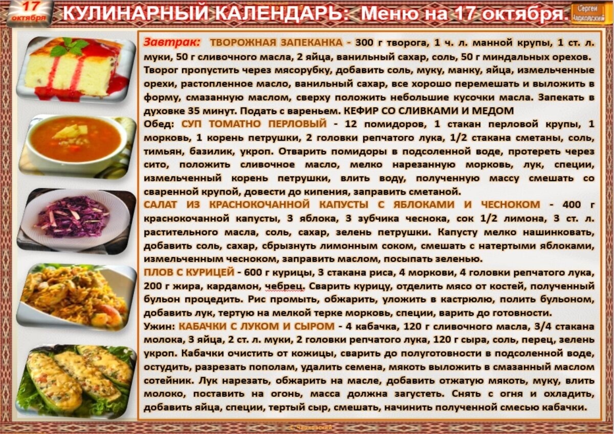 Рецепты дня на 17 октября(авт.С.Чарковский)