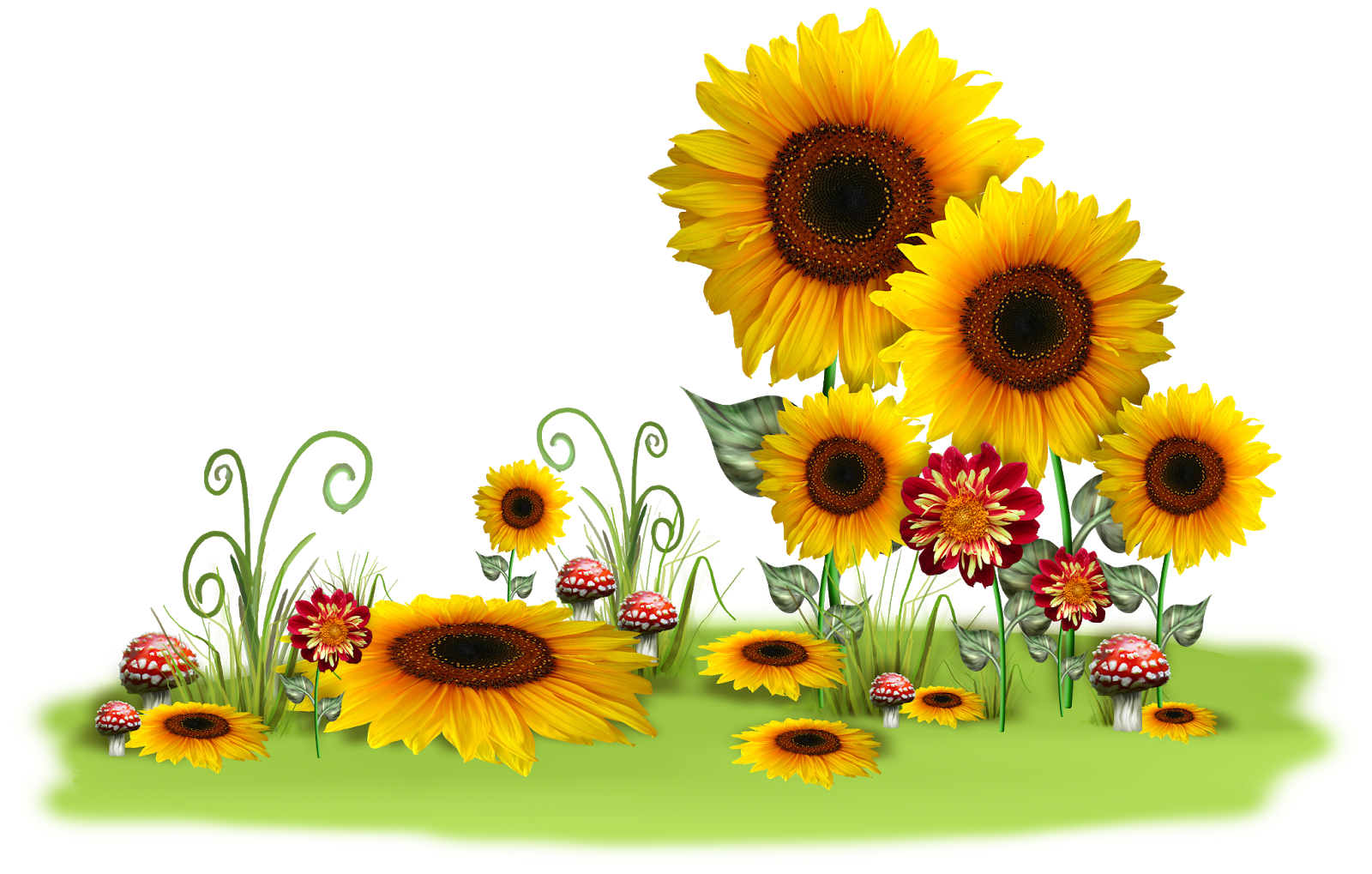 Травка с цветочками, с бабочками и грибочками.