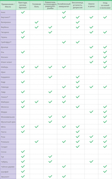 Разобраться в фармакологических свойствах эфирных масел поможет таблица.