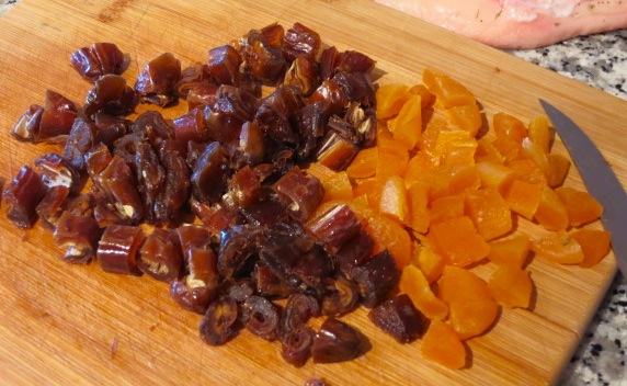 Сухофрукты также нарезаем мелкими кубиками.