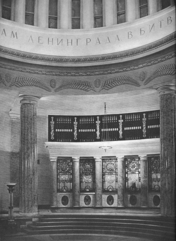 На помощь строителям пришли советские стеклоделы. Они предложили уникальную схему крепления стеклянных панелей: обвивать их вокруг колонн, прокладывая сверху и снизу между ними декоративные полосы металла.