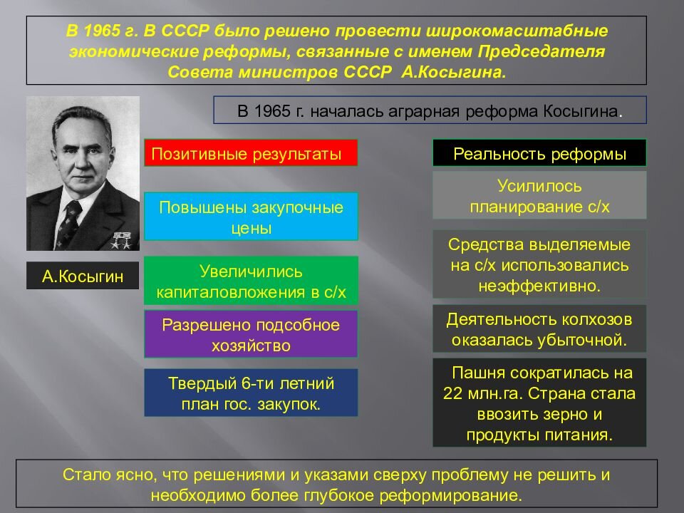 Впервые это произошло в 1965 году в ходе так называемой «косыгинской реформы», которую иногда называют «реформой Косыгина – Либермана».