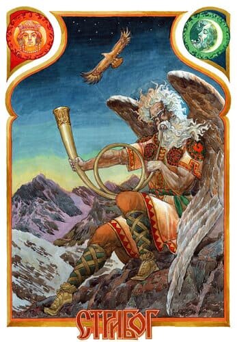 - В перечень славянских богов часто включают Стрибога — повелителя ветров. Чем он принципиально отличается от Перуна? Только лишь тем, что в данной его ипостаси самым важным акцентом является управление стихией воздуха (причем активной — то есть такой же как у Перуна), в то время как в «классическом образе» главенствует стихия огня (гроза, молния, весеннее солнце, сверкающие доспехи и проч).