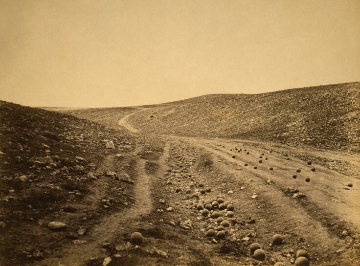 Зритель ужасался. Он думал, что тысячи солдат погибли под обстрелом такой интенсивности. Но это постановочный кадр, а ядра уложены с художественным видением вопроса. Да и название впечатляло — «Долина Смертной Тени».