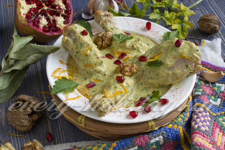 Это блюдо из курицы в ореховом соусе можно приготовить к праздничному столу в качестве холодной закуски.