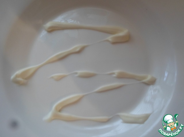Завершающим слоем будут белки. Ими полностью закрыть весь салат. Желтками сделать окаемку по бокам. |