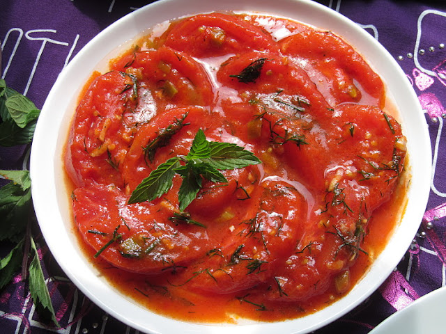Чудесная закуска из помидор тушеных с зеленью, острым перцем и чесночком! Готовится элементарно просто и быстро, съедается так же незамедлительно!!! Идеально подавать такие помидорки к плову или картофельному пюре. Специи и зелень можете добавлять по своему вкусу. Острый перец можно не добавлять, если не любите. Любители кисленького могут добавить уксус или сок лимона по вкусу. Попробуйте, очень вкусно!!!