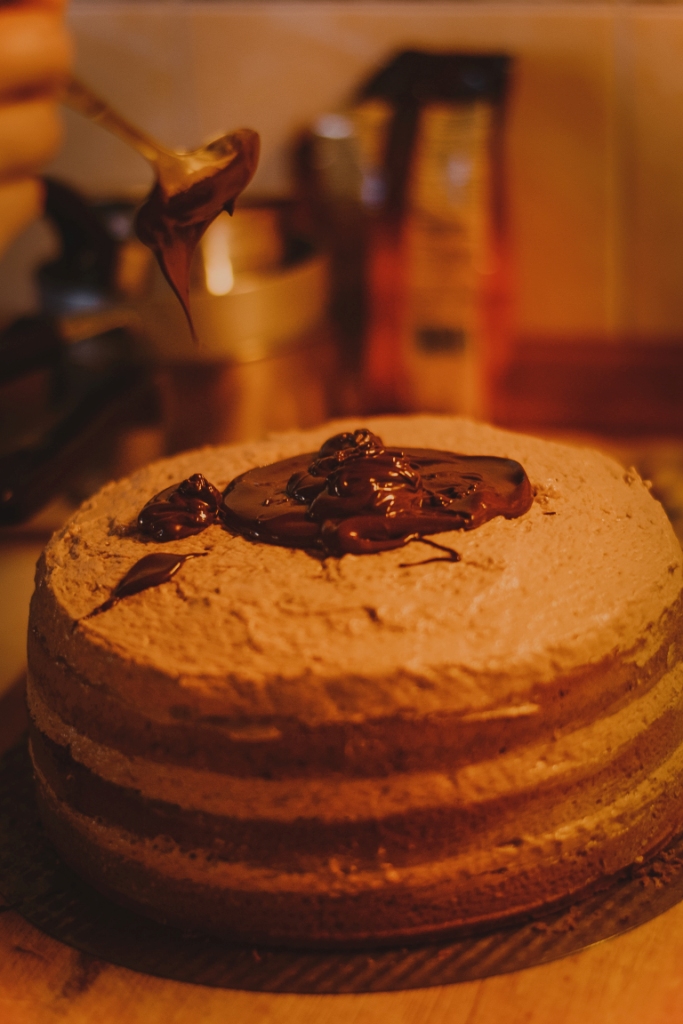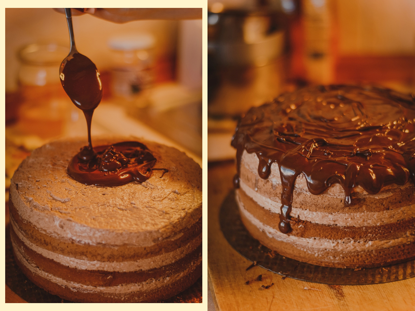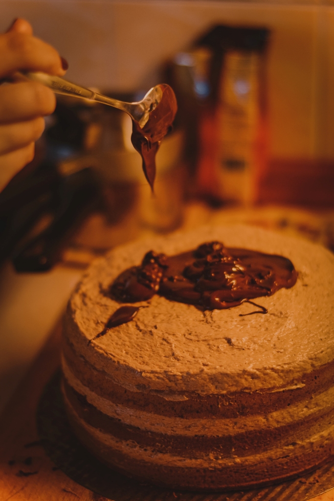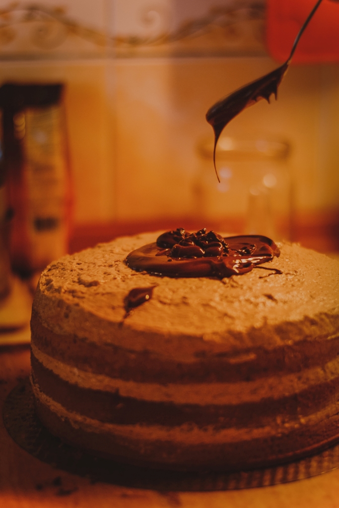11. Полить верх торта. Дать торту пропитаться и застыть в холодильнике ночь.