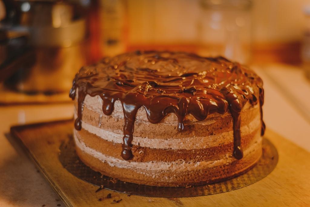 Этот торт очень легок в приготовлении. Намного больше времени уходит на ожидание: пока испечется тесто, пока застынет крем, пока пропитается торт и схватится глазурь. Готовить его просто, как дважды два. Вкус приятный, домашний, слегка шоколадный.
