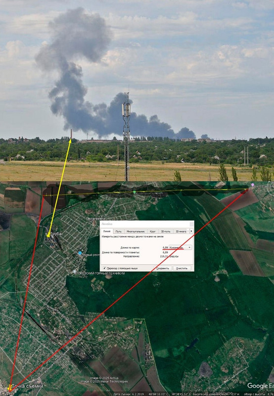 Как говорил выше, просматривается один общий стиль со спутниковым снимком в Макеевке - доказательство через другой снимок. С Макеевкой явно не получилось. Ладно, посмотрим что в Торезе. А в Торезе тоже дела не очень, правдоподобно, но прокол. Фейк делали не очень умные люди. Эксперт по фотографии тоже большим умом не блеснул, иначе не поставил свою фамилию под откровенно фейковым заключением