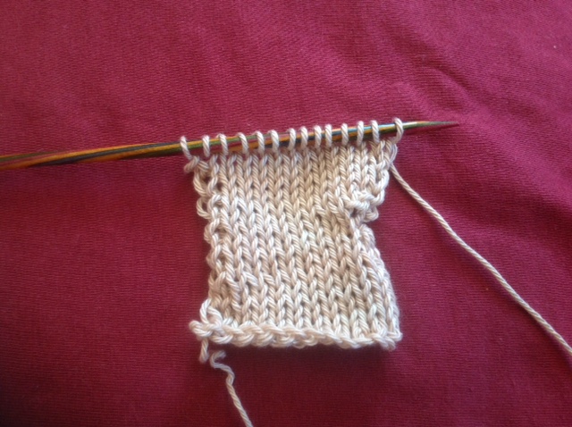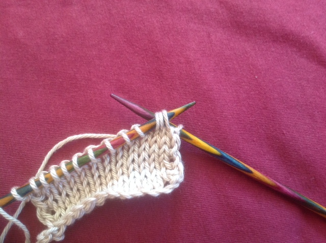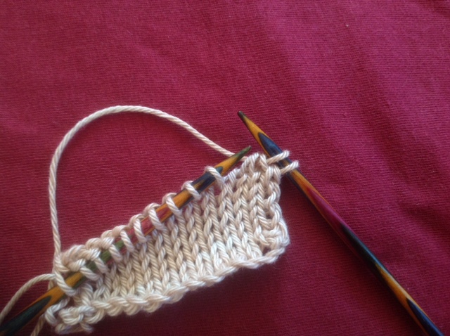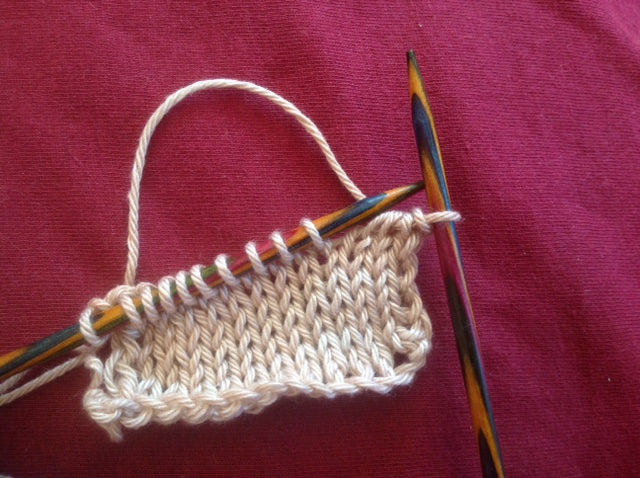 6. В следующем лицевом ряду из первой (кромочной) петли вывязываем три, то есть восполняем закрытые и вяжем еще 7 рядов.