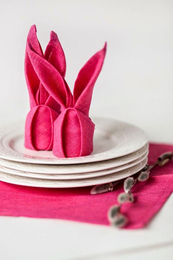 Кстати, пасхальных кроликов (вернее, их выглядывающие ушки) совсем не сложно смастерить из тканевых салфеток. Причём такие милые украшения будут интересны как детям, так и взрослым.