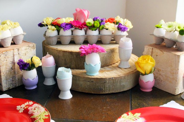 Цветы сами по себе являются прекрасным украшением любого пространства, а в паре с пасхальными яйцами праздничный стол станет ещё краше. Просто разместите всё на многоуровневой подставке и наслаждайтесь прекрасной картиной.