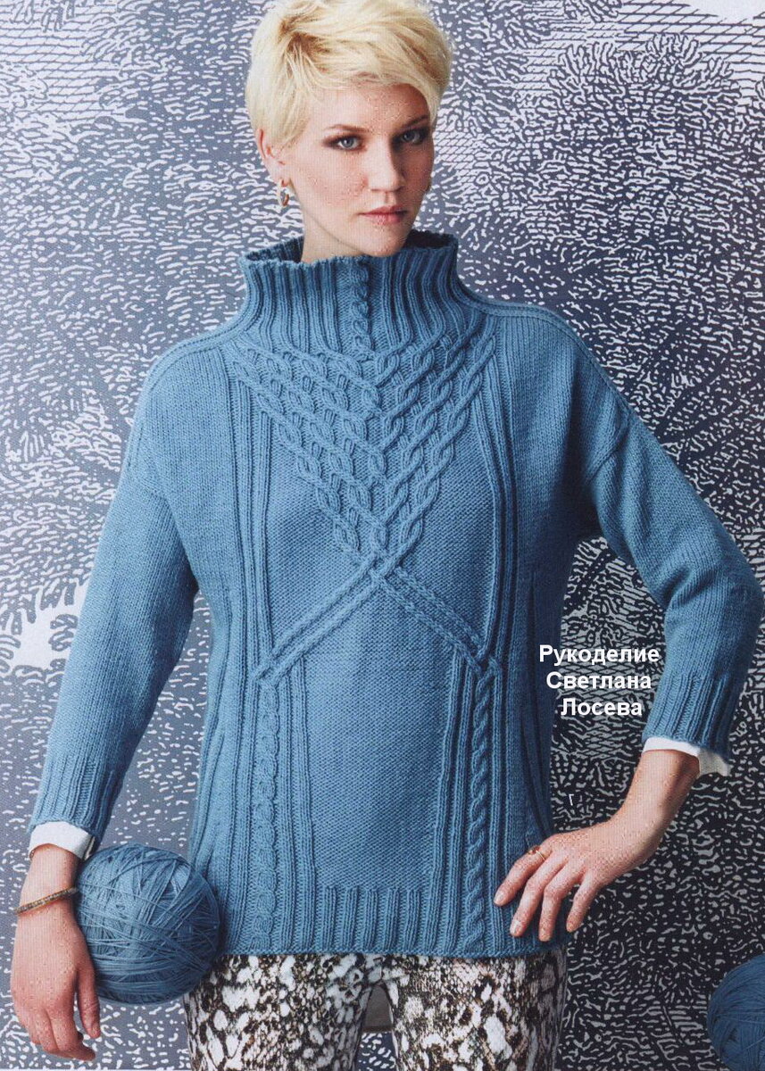 Модель 2. Джемпер. Рельефные узоры, переходящие в красивую кокетку смотрятся супер.