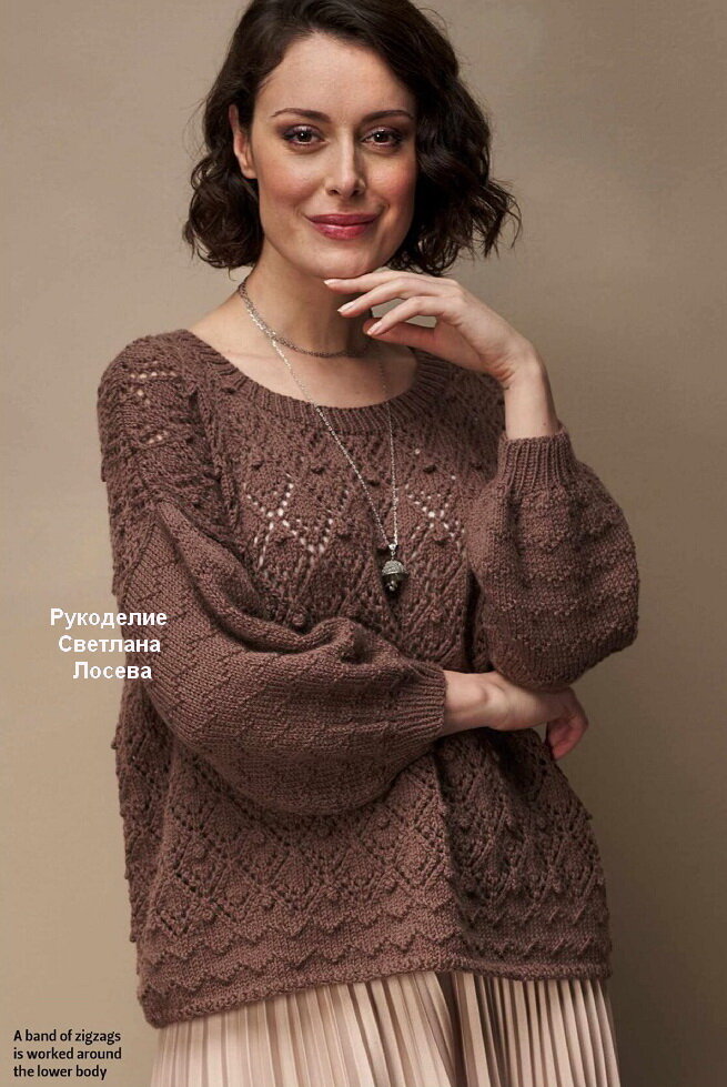 Модель 1. Красивейший джемпер в шоколадном цвете связан в стиле оверсайз.