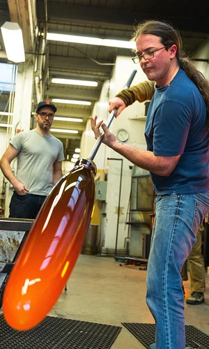 Рэйвен Скайривер (Raven Skyriver) родился в 1982 году и начал дуть стекло в старшей школе в возрасте шестнадцати лет. Наставник Рейвена, Ларк Далтон , научил его создавать оборудование для выдувания стекла и обучил традиционной венецианской технике. В 2003 году Рэйвена пригласили присоединиться к команде Уильяма Морриса . Он проработал в команде до выхода Морриса на пенсию в 2007 году. Опыт работы с такой талантливой группой художников вдохновил его на решение стать профессионалом в стеклянной скульптуре.