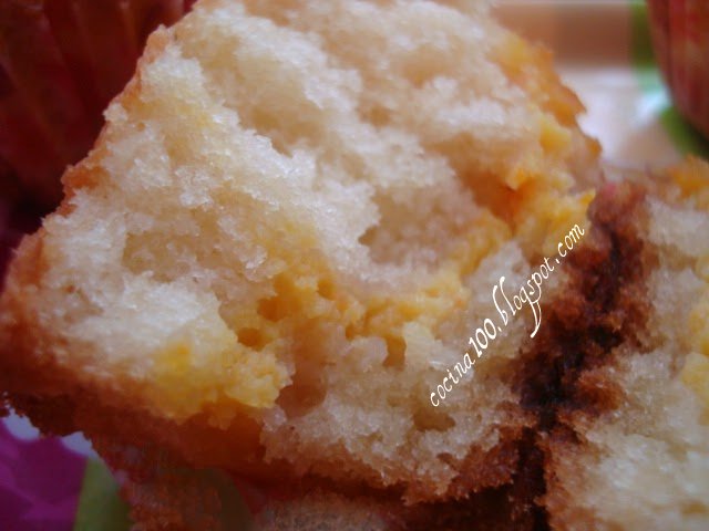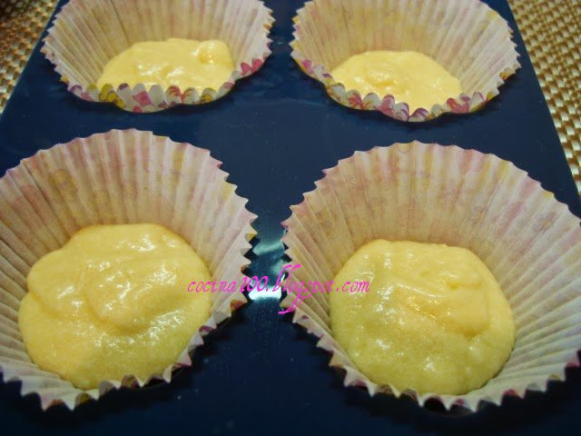 Формочки смазать маслом или вложить в них бумажные капсулы. Положить по 1 ч.л. теста, затем апельсинового курда.